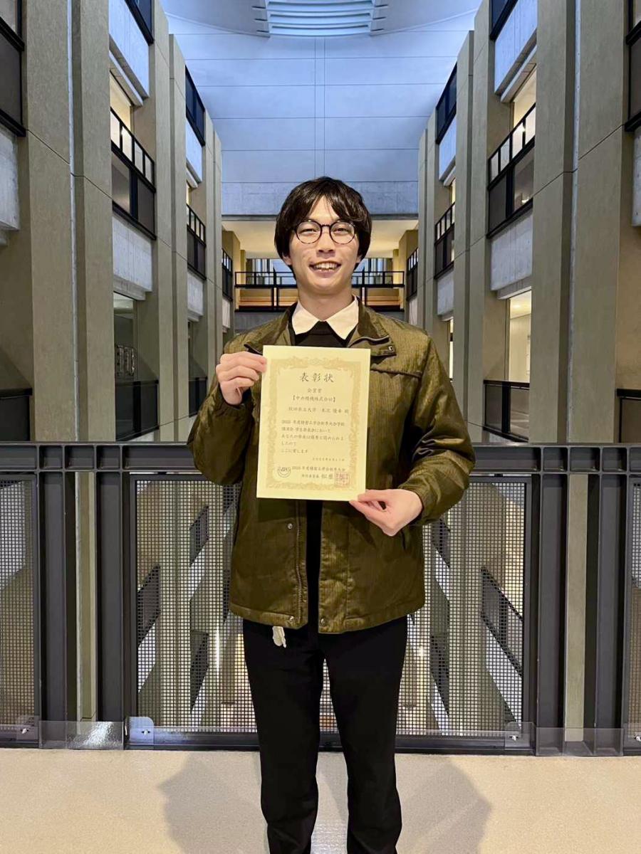 この度は、2025年度精密工学会秋季大会学術講演会の学生研究発表会において企業賞を賜り、誠に光栄に存じます。本受賞に際し、ご指導くださいました鈴木庸久先生、藤井達也先生をはじめ、日頃より切磋琢磨し合い支えてくださっている研究室の皆様に、心より感謝申し上げます。今回の受賞は、今後の研究活動における大きな励みとなりました。これを糧に、より一層研究に精進してまいります。