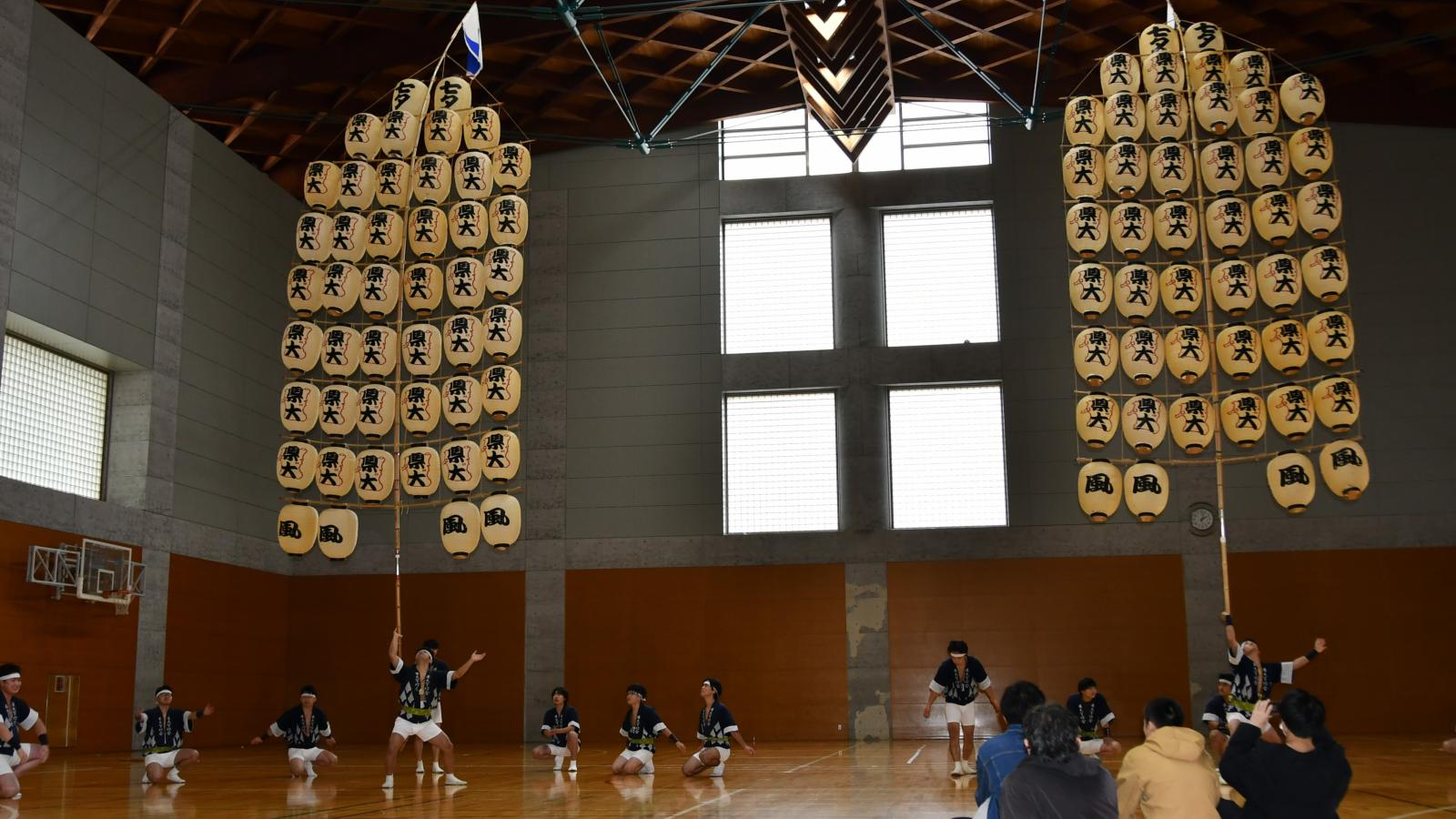 これまで潮風祭実行委員会を中心に潮風祭に向けて様々な準備を進め、両日を通し多くの学生団体による模擬店、ステージイベントのほか、1日目には県大竿燈会による演技、2日目にはカラオケ大会やお笑いライブが行われ、賑わいを見せました。