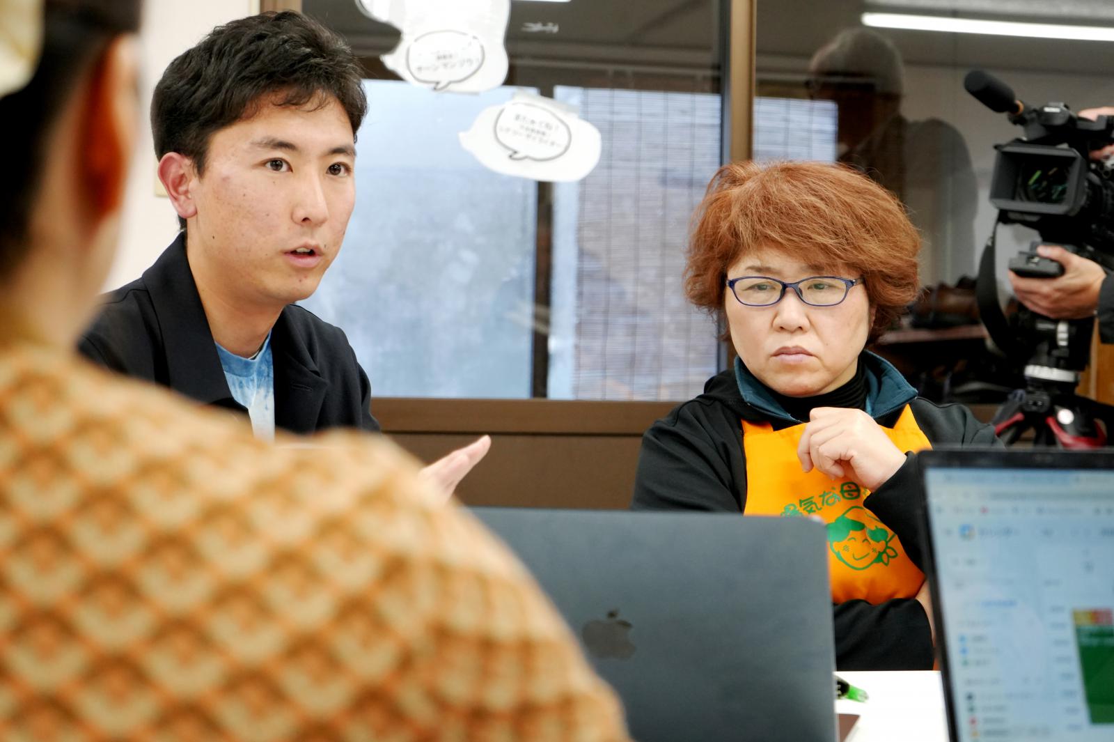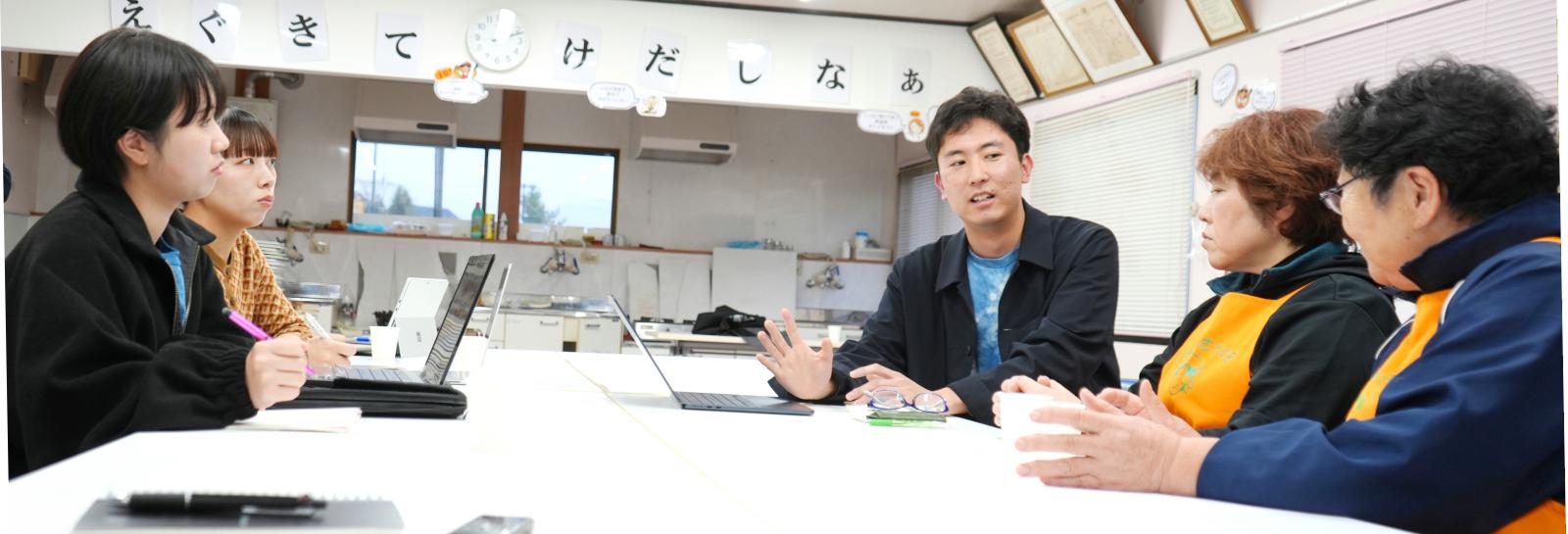 令和7年11月17日、生物資源科学部アグリビジネス学科の学生3人(地域ビジネス革新プロジェクト/指導教員:重岡 徹 教授[農村社会学])が、大館市の農産物直売所「陽気な母さんの店」に出向き、直売所の経営課題の解決に向けて意見交換を行いました。学生はこれまでのヒアリング調査で、販売する漬物が衛生管理された加工施設での製造が義務化された食品衛生法の改正を受けて、新たに整備された漬物加工所の利用率が低迷している実態や、生産者の高齢化や廃業により、農産物が集まりにくく、人手不足により新規事業に挑戦できないなどの現状を把握しており、これらの解決に向けて原因究明と解決策の提案に取り組んでいます。