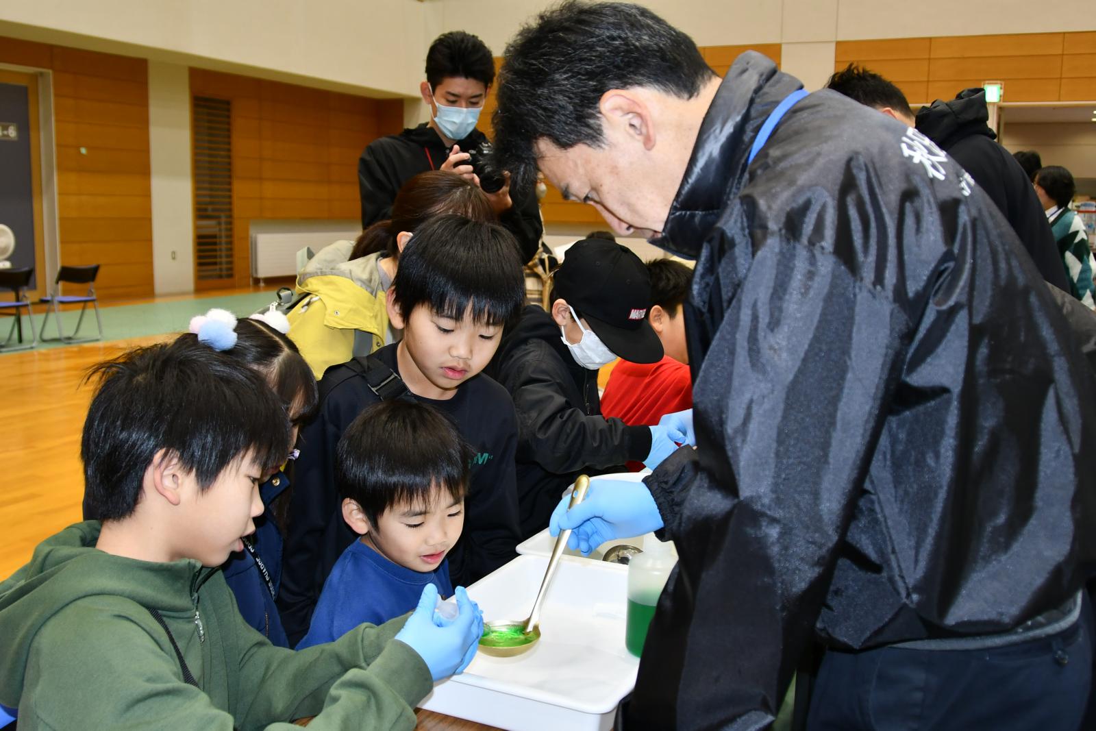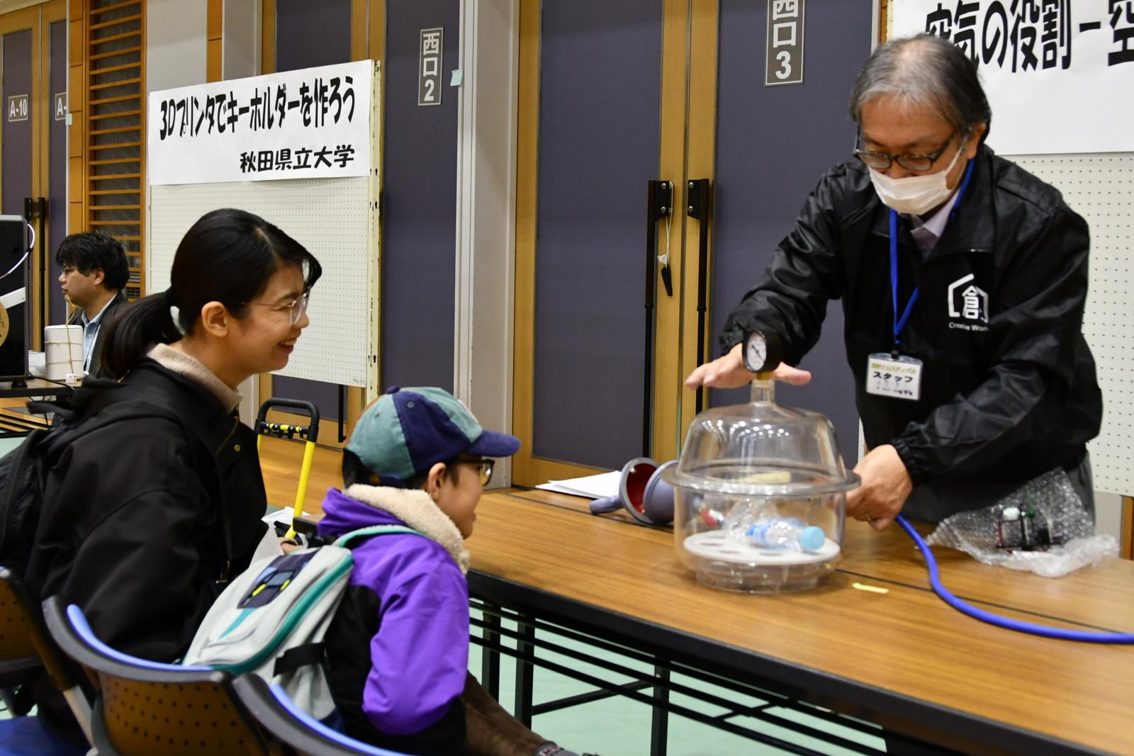 会場には、スライムづくりやオーブントースターを使用したキーホルダーづくりといった製作体験から、「空気がなくなるとどうなるか」といった科学実験、室内に含まれるマイクロプラスチックを観察する体験まで、日常ではなかなか触れることのできない多彩なブースが並び、多くの来場者で賑わいました。