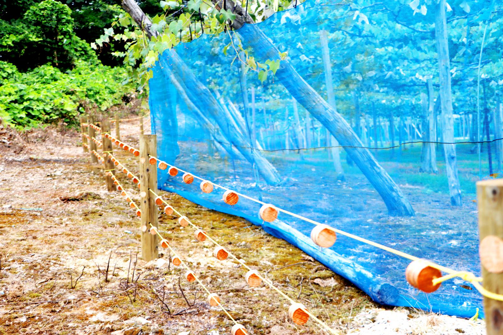クマの獣道を遮るように設置された忌避柵(果樹園)