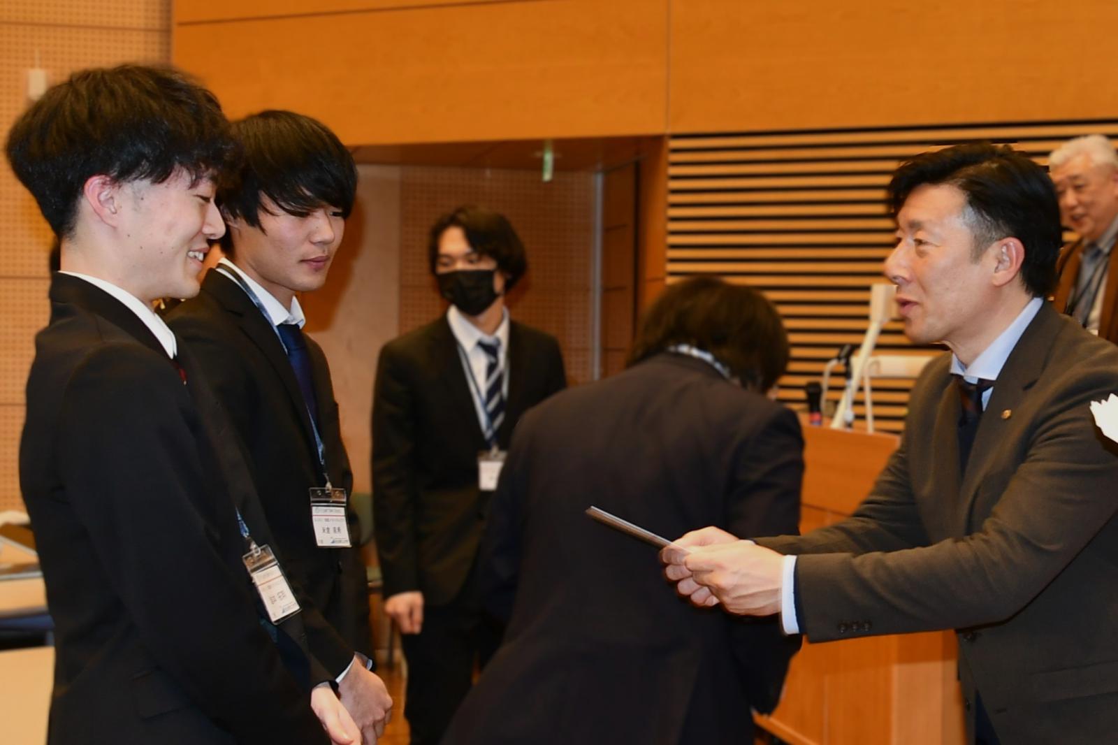 発表会後に行われた企業展示では、地域企業7社より展示ブースを出展いただき、自社の事業内容や求める人材、活躍の場について詳しくご説明いただきました。学生はブースでの説明に真剣に耳を傾け、企業や産業界の現状を知ることのできる良い機会になりました。お忙しい中ご参加いただいた企業の皆様、誠にありがとうございました。表彰式
