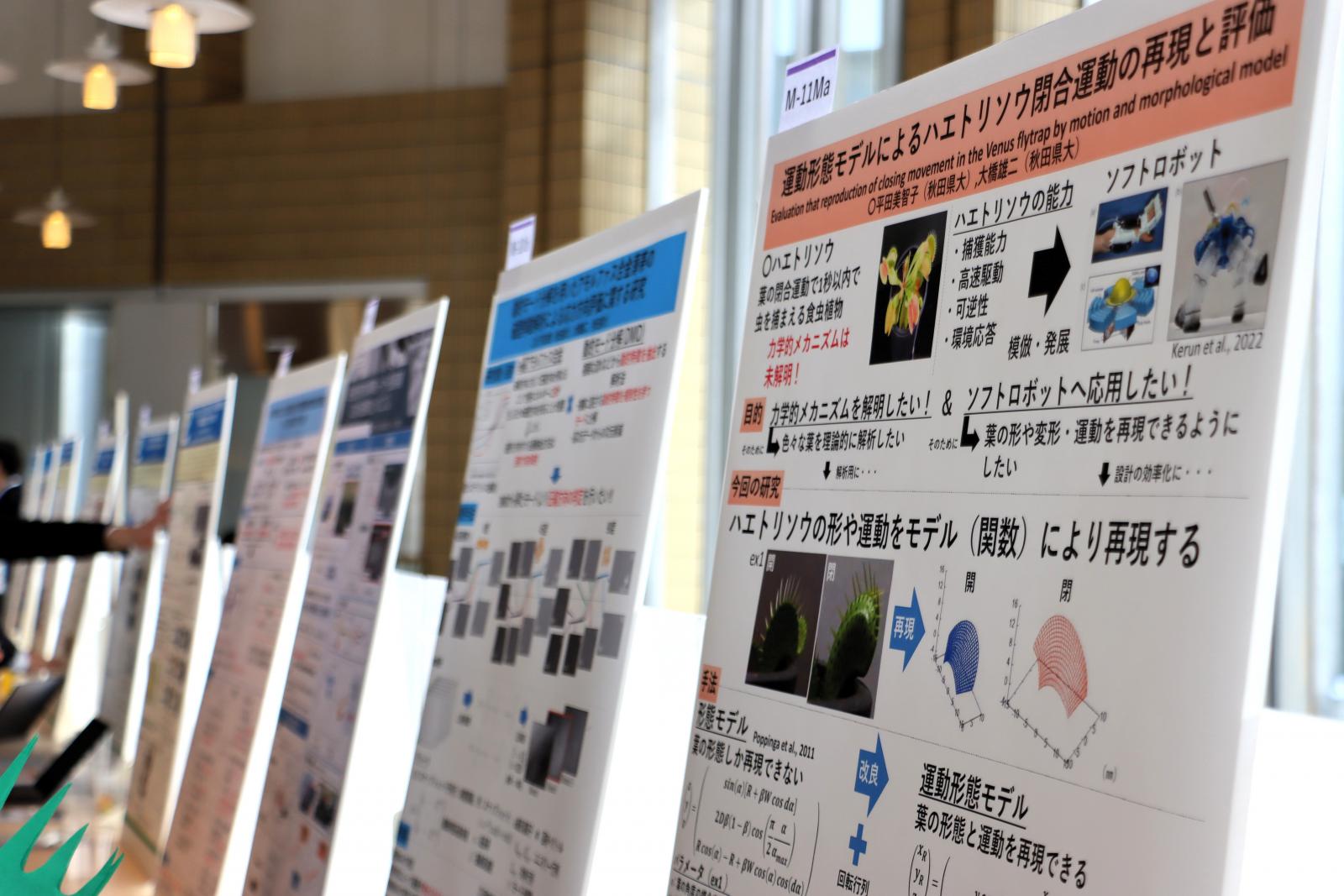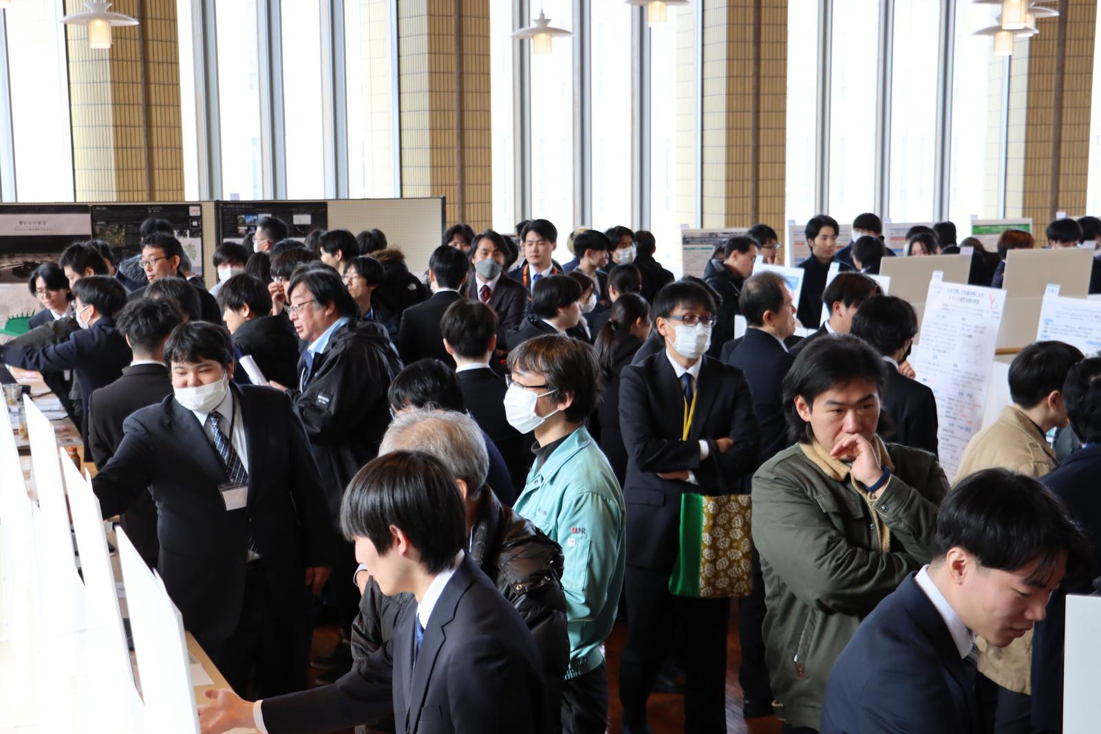 当日は、システム科学技術学部4年生、システム科学技術研究科の学生が、来場した企業技術者など学外の方に向け、卒業研究をはじめとする最新の研究成果をポスター形式でプレゼン発表しました。発表は2グループに分かれ、1時間ごとのコアタイムを設けて発表を行い、広範な業種分野の技術者の皆さんと活発にディスカッションしました。参加した学生からは、「自分の研究分野と異なる分野の企業の方からアドバイスをいただき、新たな気づきを得ることができた」「予想外の質問に戸惑うこともあったが、4年間で培った知識をもとに答えることができた」といった声が寄せられました。学生にとっては、自身の研究を社会にどう役立てるかという視点を再確認する機会となり、研究意欲の向上や新たな課題の発見にも繋がりました。