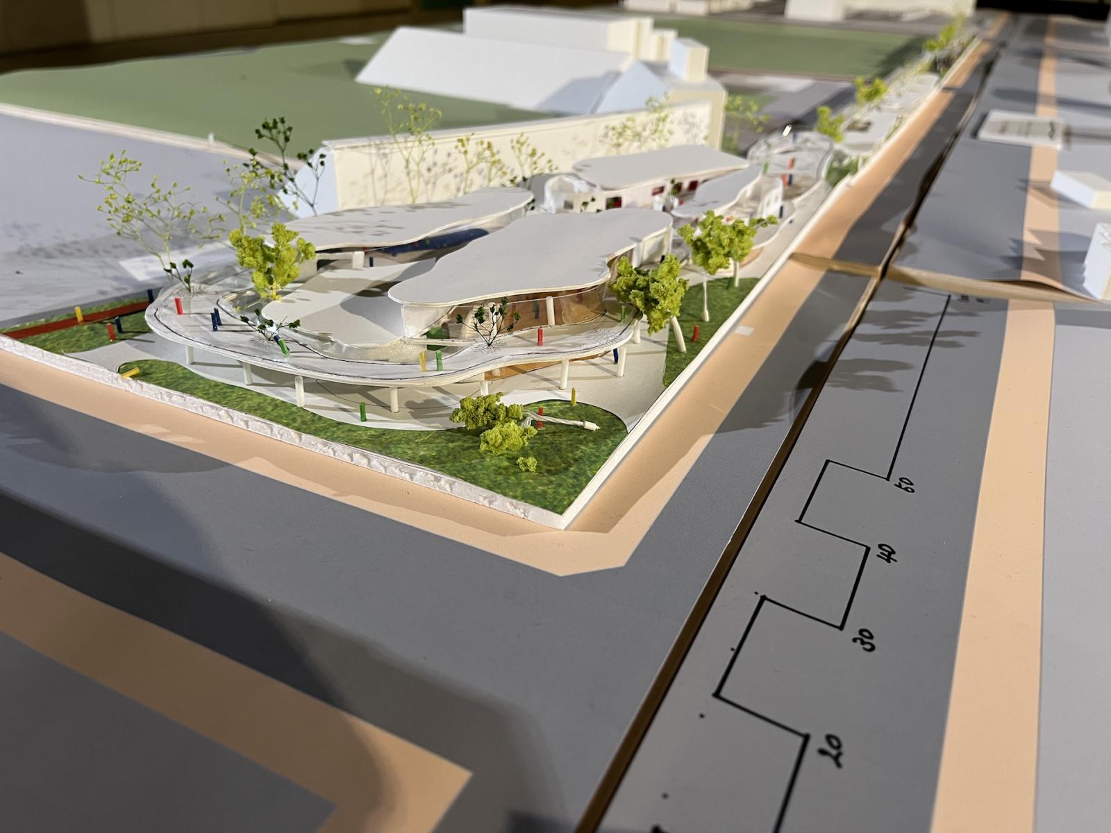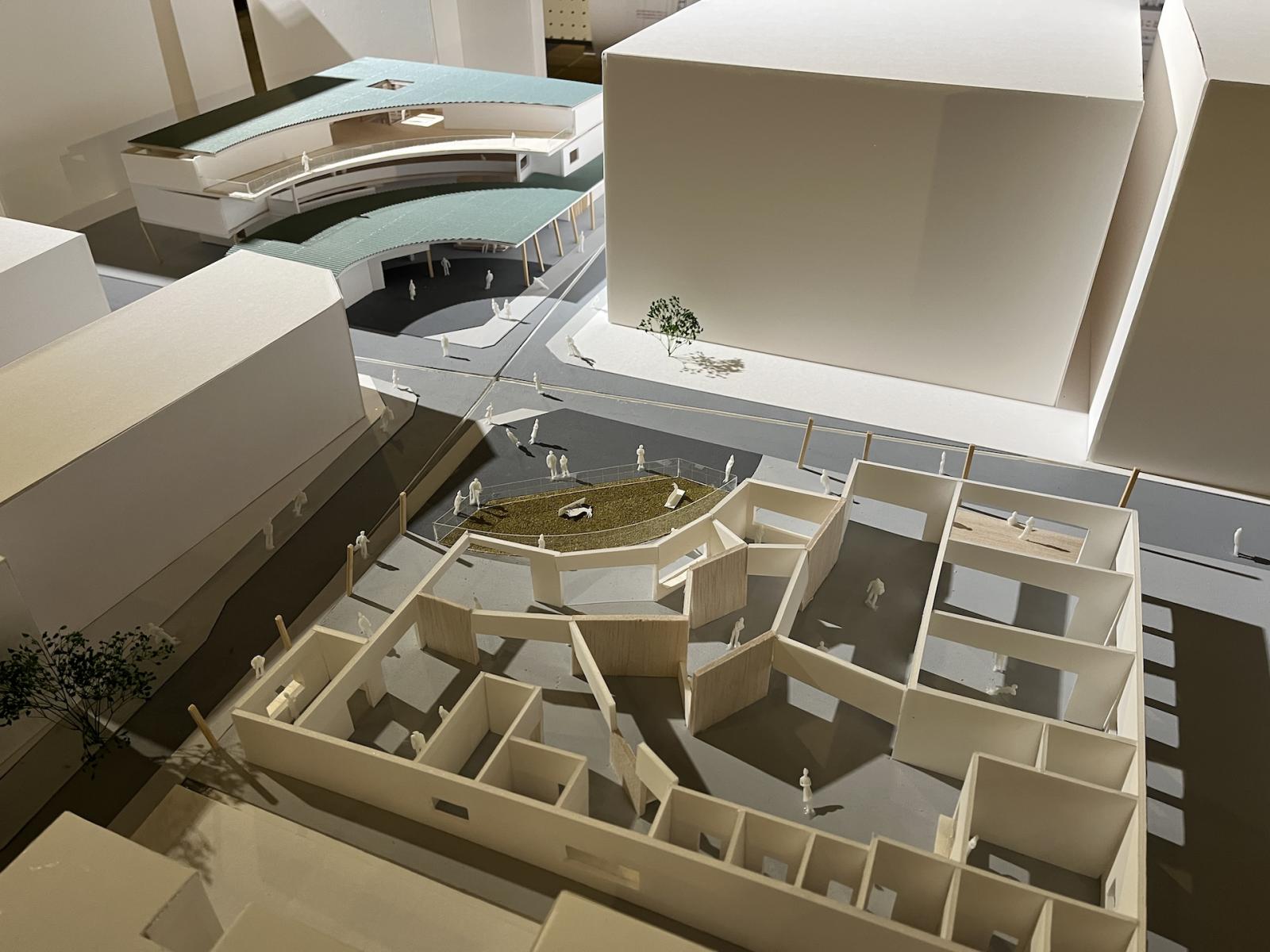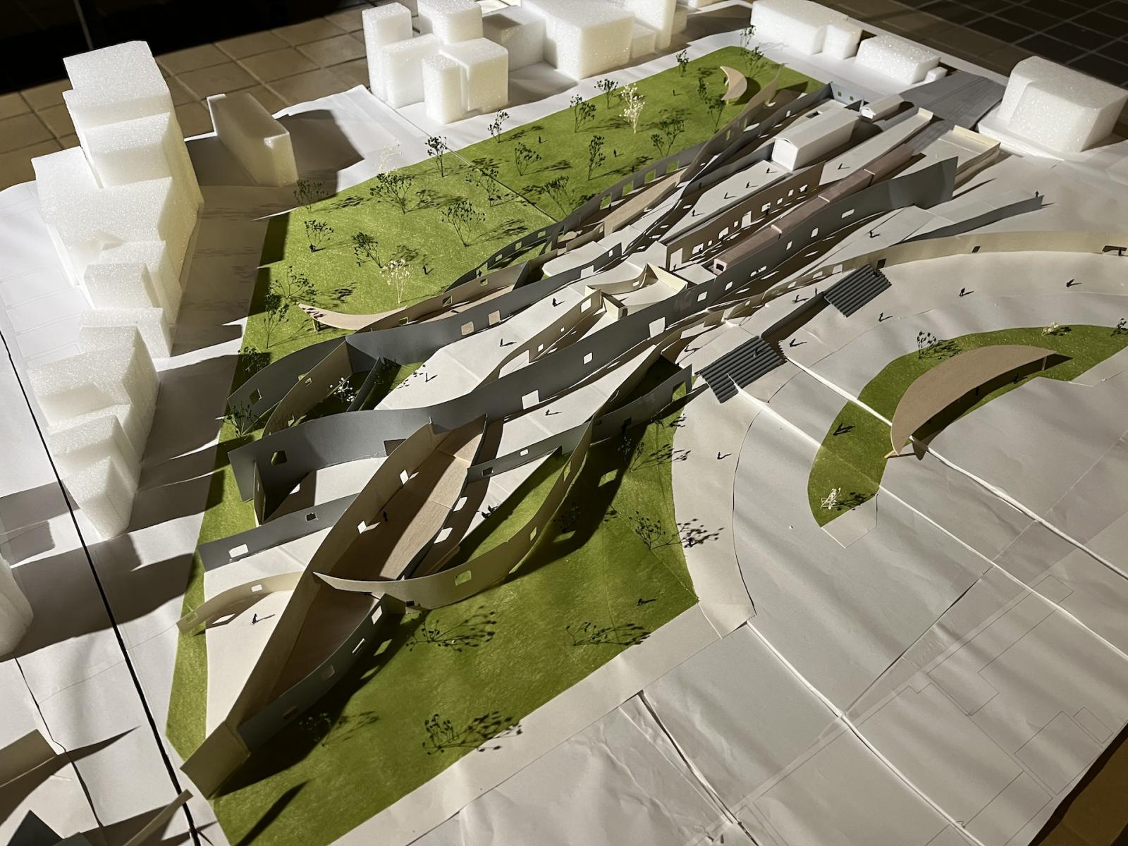 また、学外の設計競技入賞作品や3年生の作品の一部も展示しております。さらに、3年生後期のグループ設計課題として取り組んだ、八橋運動公園をスポーツ・健康のための市民交流エリアとする提案も展示いたします。