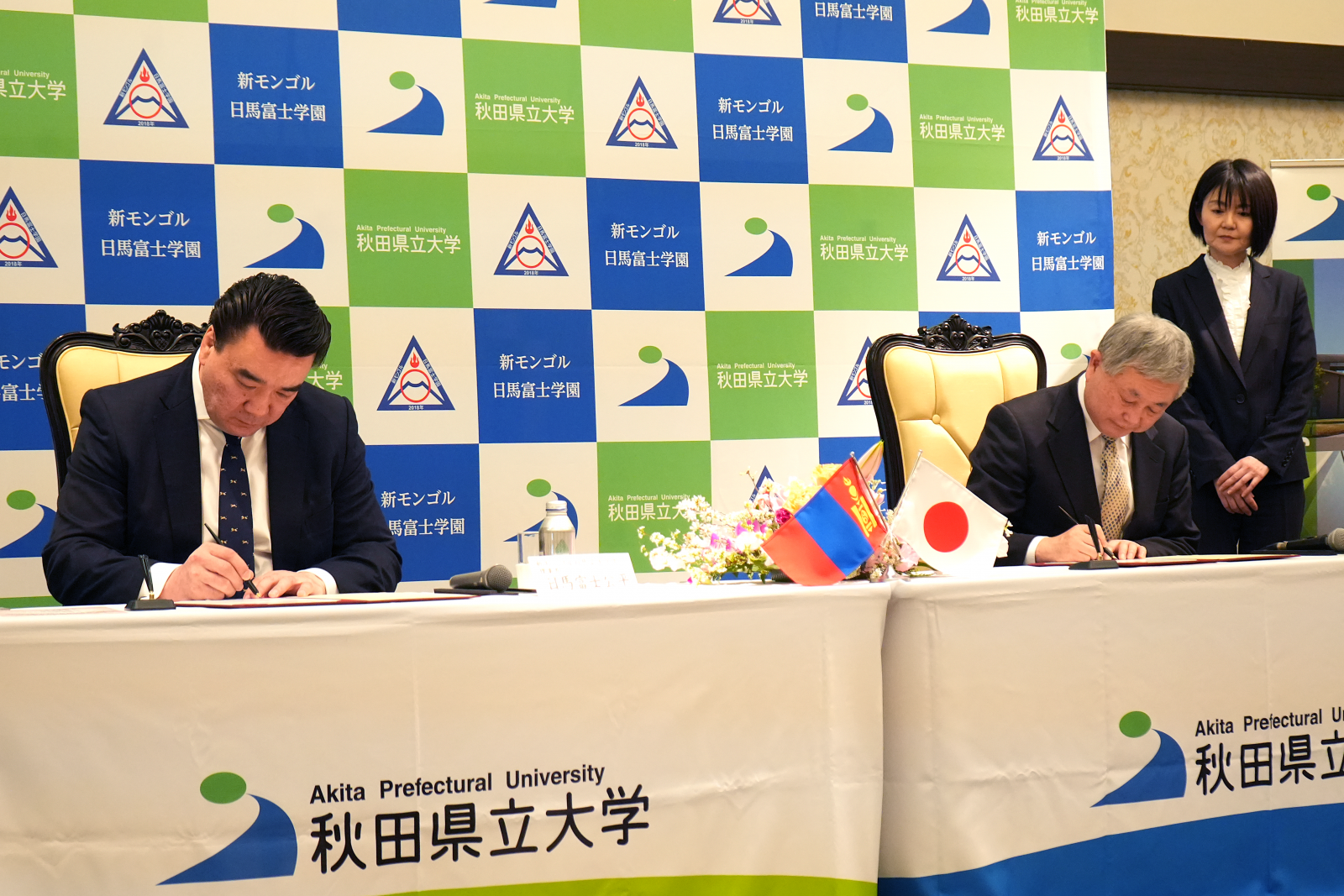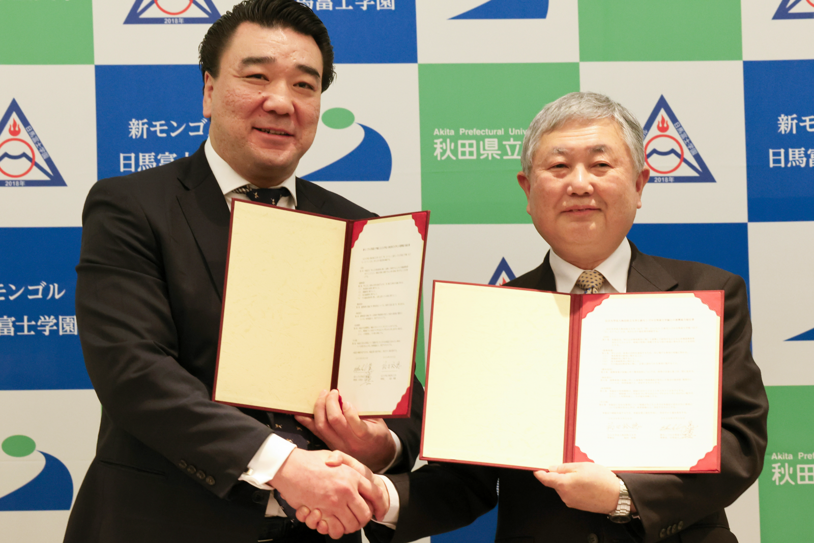 日馬富士理事長からは、「生徒たちが目標を持ち、多くの方々との出会いと支えの中で夢を叶えてほしい。秋田県立大学との交流が、世界で活躍する人材を育てる大きな刺激になることを期待している」との力強いお言葉をいただきました。また、本学の福田学長は「多様な人材を本学に迎え入れ、キャンパスの国際化を加速させたい。この連携が、双方の学生にとって世界をリードする一助となることを願っている」と展望を述べました。本学は今後、この新たなパートナーシップを通じ、秋田とモンゴルを繋ぐ教育・研究の架け橋として、より一層の国際貢献に努めてまいります。