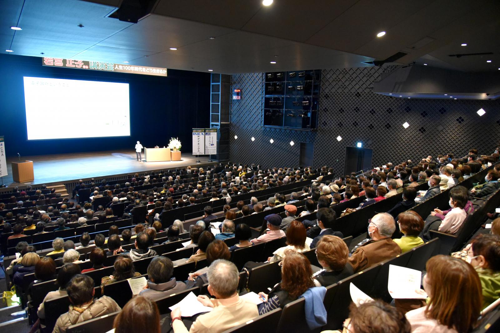 若宮さんからは、これまでの自身の人生を振り返りながら、生涯を通じた学びや新しいものを生み出す力の重要性、健康でイキイキと暮らすためのヒントなどについてユーモアを交えてお話をいただき、聴講した約520人は熱心に耳を傾けました。「とにかく人生100年時代、まずは勉強しましょう。現役世代の負担を減らすためにも、高齢者が積極的に新しいことにチャレンジして学び続けることが何より大切。スマートフォンは、生活の利便性が上がるため積極的に活用しましょう。また、AI(人口知能)を使った学習は高齢者の学びに効果的。シニアこそデジタル技術に親しむことが必要!!周りの目は気にせず生涯を通じて学び続け、創造的に生きていこう。」と呼びかけました。