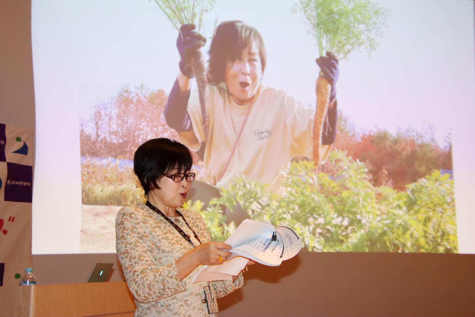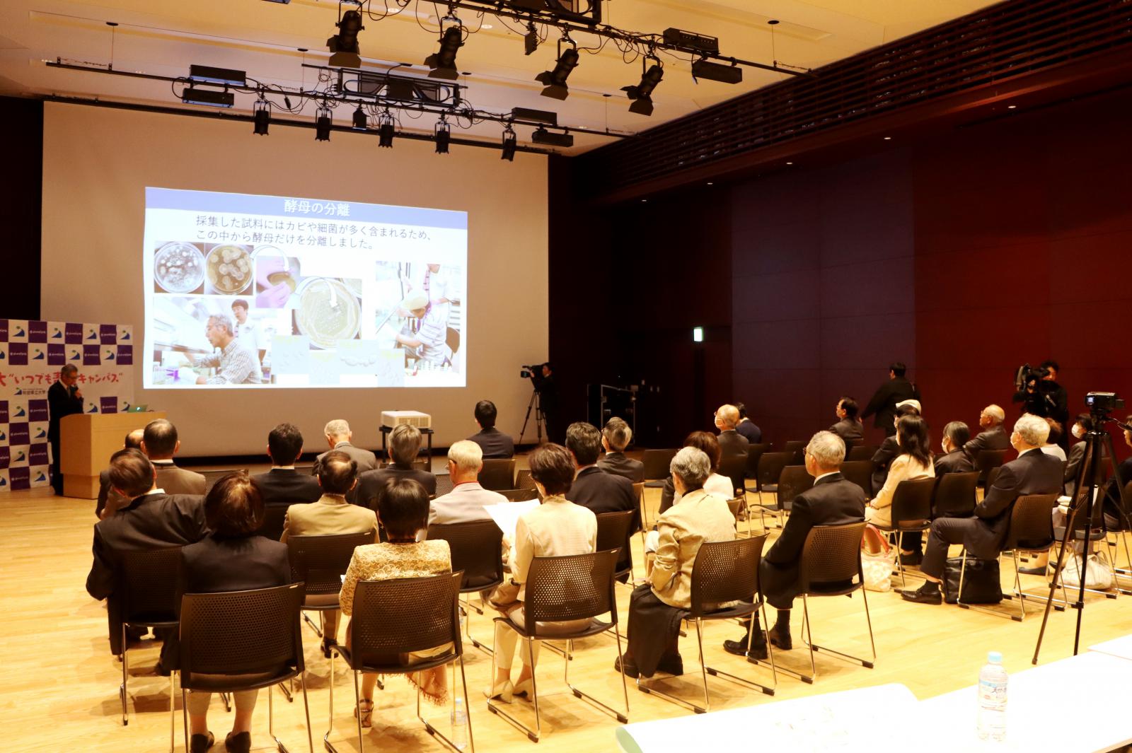 卒業生14人がこれまで取り組んできた研究や学習の成果、サークル活動の報告、キャンパスライフの思い出などについて発表しました。当日は、研究を指導した教員のほか、ご家族ご友人など多くの方にご来場いただき活気のある発表会となりました。シニア大学生は、この日のために何度もプレゼン練習を重ねてきただけあり、緊張することもなくその成果を存分に発揮し全員スムーズに発表を終えることができました。