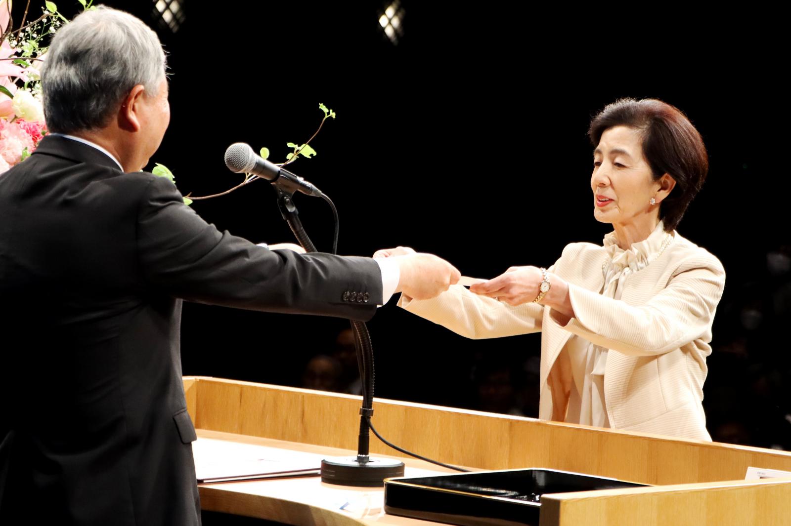 令和6年5月8日(水)、あきた芸術劇場ミルハスにおいて、本学と秋田魁新報社が県民の生涯学習支援と地域活性化、健康寿命の延伸を目指し連携・展開する生涯学習プログラム『いつでも青春キャンパス』で学ぶシニア大学生の最終報告会、1期生卒業式と2期生入学式、および「世界最高齢のアプリ開発者」として知られる若宮正子さん(89歳)を講師にお迎えし、「語り合おう人生100年時代」と題しての講話とトークセッションを開催しました。