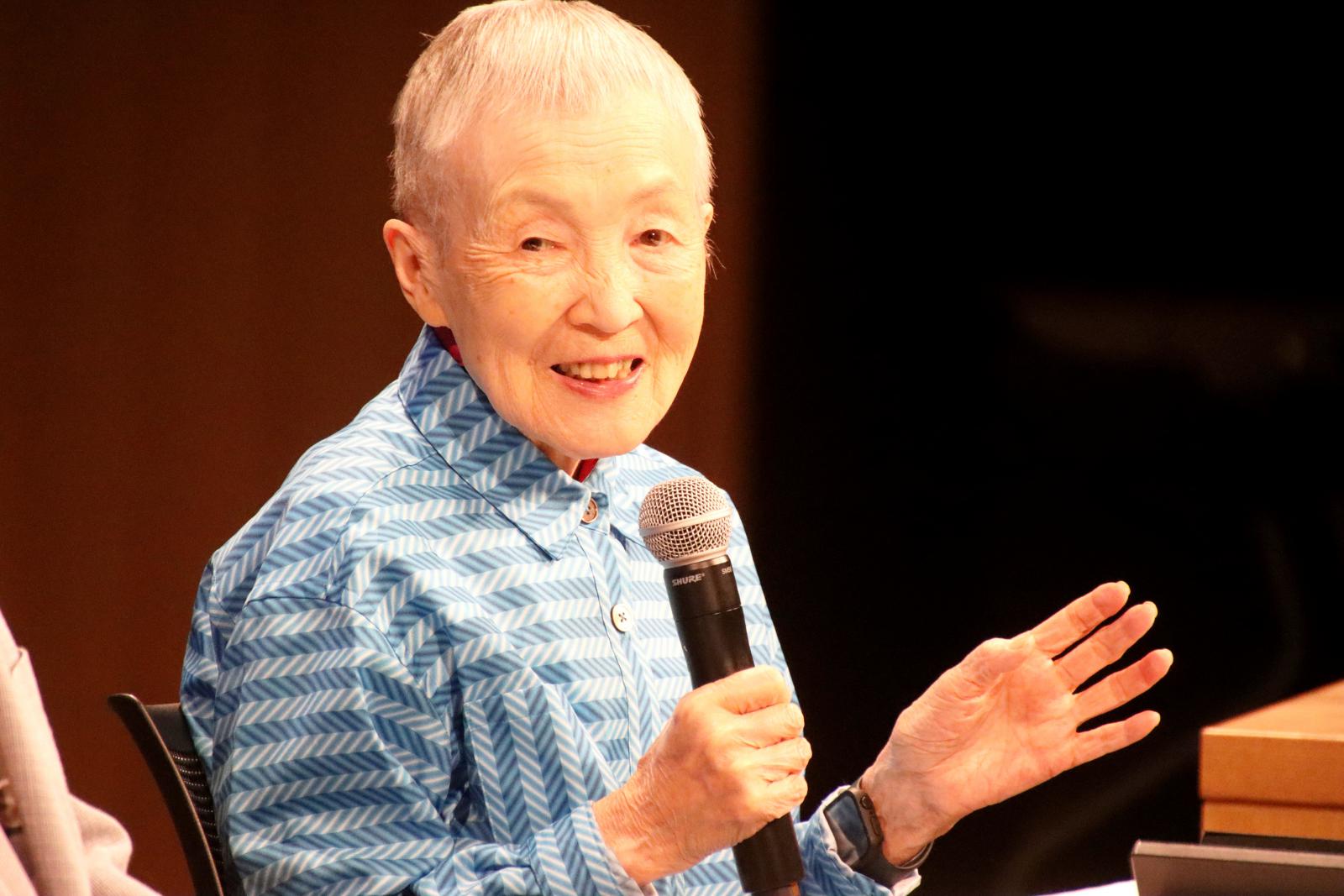 「世界最高齢のアプリ開発者」として知られる若宮正子さん(89歳)を講師にお迎えし、「人生100年時代をどう生きるか」と題してご講話いただきました。現在89歳の若宮さんは、定年退職後にパソコンを始め、独学でプログラミングに挑戦、81歳のとき、iPhoneのアプリ「hinadan」を開発、Apple社に評価され「世界最高齢のアプリ開発者」として紹介されました。現在は、国連等のイベントで講演したり、デジタル庁デジタル社会構想会議構成員を務めたりするなど、多彩な活動を展開しています。
