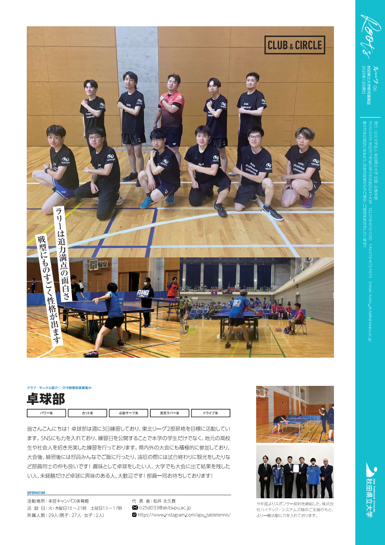 裏表紙 クラブ・サークル紹介 卓球部