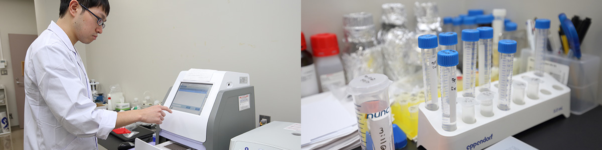 秋田県立大学生物資源科学部附属バイオテクノロジーセンターでは、現在の生命科学研究に不可欠である分析技術のうち、DNA塩基配列の解析、DNA多型解析、遺伝子組換え植物の作製などの受託解析サービスを広く学内外のユーザーに開放しています。バイオテクノロジーセンターでは既に10年以上の受託実績を有し、現在では本学の生物資源科学部の教育研究活動にとって不可欠なセンターとして位置付けられるほどに成長していますが、今後、本学の重要な活動の特色の一つとしてなお一層の発展を図っています。専門分野の異なる教員が運営に関与し、熟練した専任スタッフが独自に開発した分析マニュアルを使用してユーザーの多様なニーズや相談にも応えています。こうした活動を通じて、学内の研究の高度化を図り、実践教育にも貢献するとともに、社会貢献にも努めてまいります。