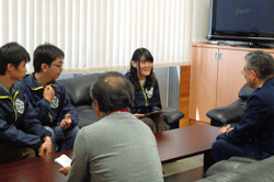| 【委嘱状と自治会学生(前列3名)】 | 【懇談の様子】 |