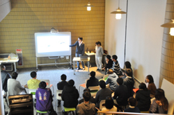 報告会では、今年の夏から秋にかけて実施された「LINKtopos 2018 in 静岡」、「ヘルシンキ大学短期留学」「インド・ビヤニ大学短期留学」、「UCSD短期留学」、「シンガポール語学研修」での活動について報告が行われました。発表者からは、活動内容の紹介のほか、滞在中の思い出や、とくに印象的だったこと、また大変だった点、うまくいった点、後日談、もっとこうすればよかったなど、企画運営や留学を通して体験した「生」の感想が語られました。