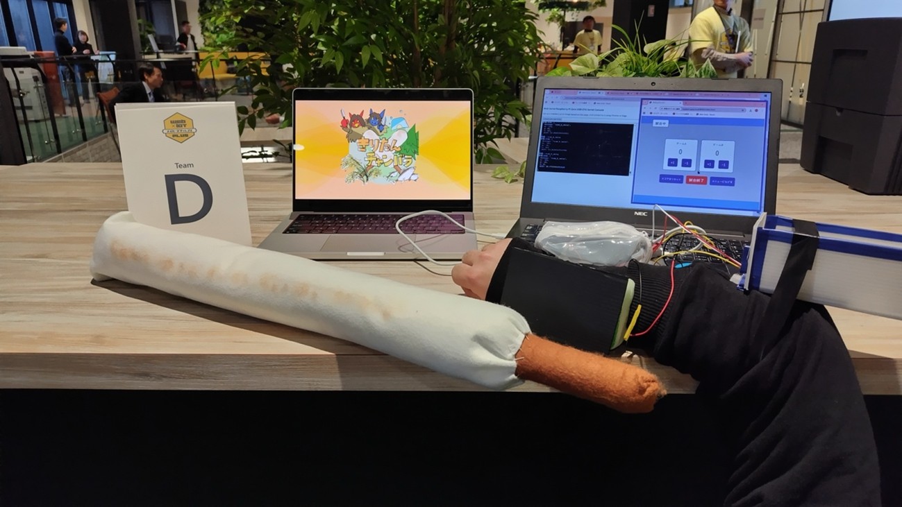 審査の結果、情報工学科1年川上洸世さんの所属するチームD (作品名:きりたんチャンバラ)が最優秀賞に選ばれました。また、経営システム工学科3年木佐貫結菜さんの所属するチームC (作品名:寄り道VOTE)が特別賞に選ばれました。