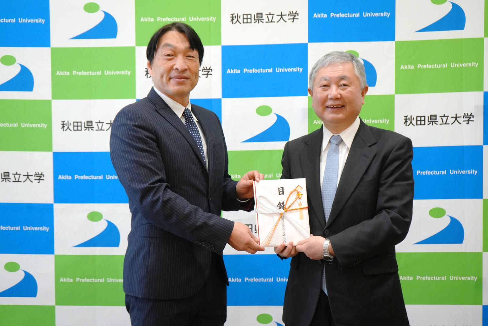 秋田洋上風力発電株式会社様のご厚意に心より感謝申し上げます。いただいた寄附金につきましては、将来の秋田を担う学生たちの教育環境の充実や、地域課題を解決するための学術研究の推進等に、大切に活用させていただきます。