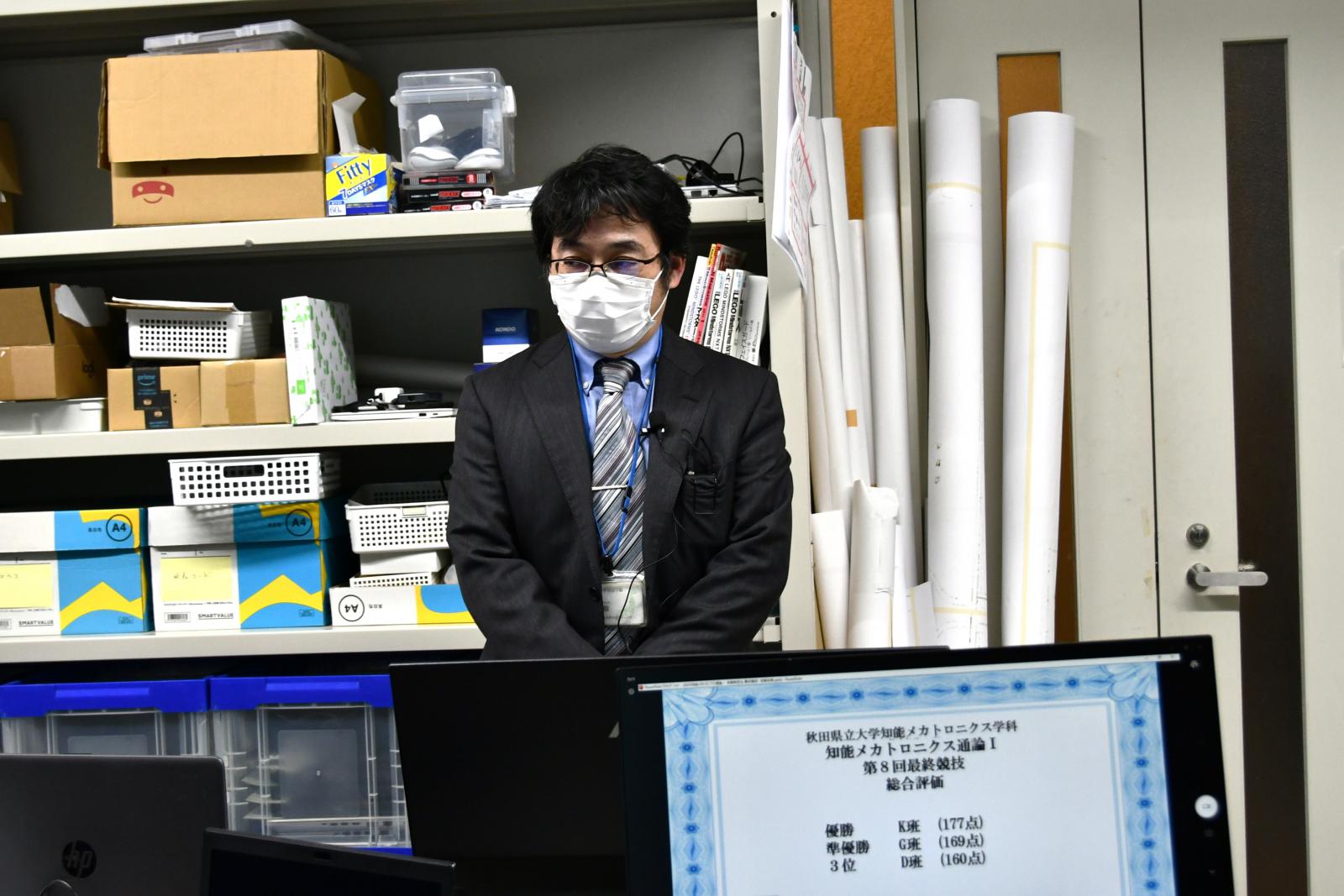 「知能メカトロニクス通論I」(主担当教員:齋藤 敬 教授[専門:医用生体工学])では、実社会の課題解決をテーマに、秋田の冬の課題である雪下ろしを想定したロボット製作に取り組んでいます。学生たちは各種センサーを活用しながら、屋根の雪を安全かつ効率的に下ろすロボットの開発を行いました。