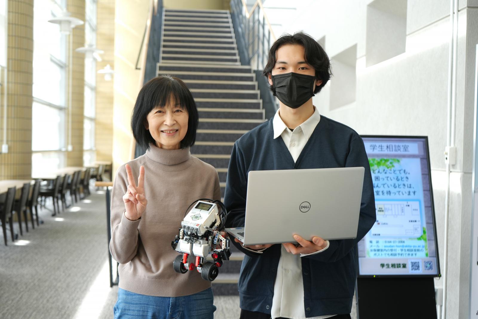 1月に自身初のプログラムを書き上げ、初めての動作確認に臨みましたが、ロボットは沈黙したままでした。それでも「失敗こそ学びの醍醐味」と語る山本さんは、研究室の“先輩”である同学科4年生の夛々 礼(ただ れい)さんの助言を頼りに、一歩ずつ原因を探り、改良に改良をを重ねてきました。