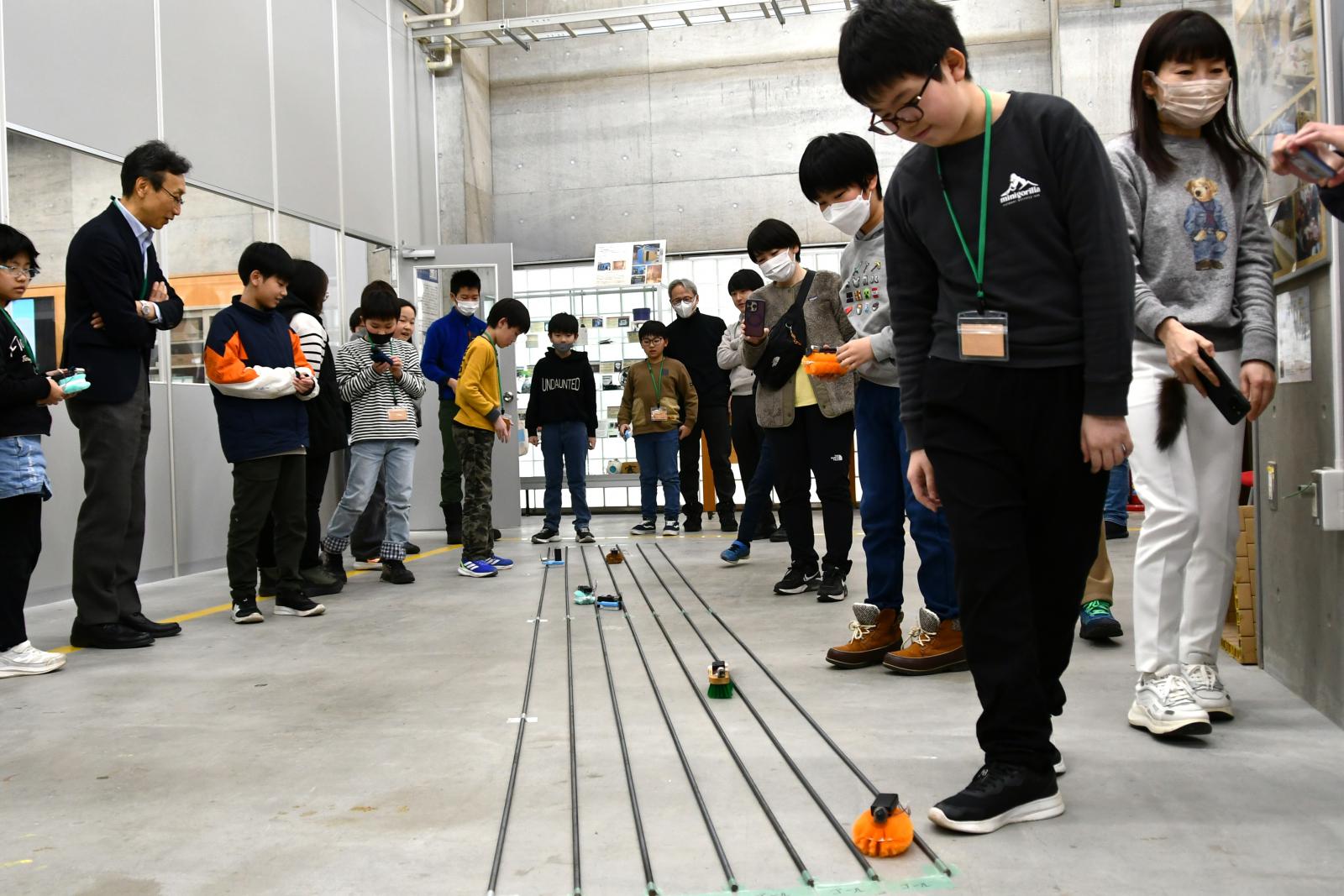 マシン完成後は、創造工房特製のレースコースで競争したり、障害物のある迷路コースに挑戦したりしながら、ゴールまでのタイムを競い、大いに盛り上がりました。