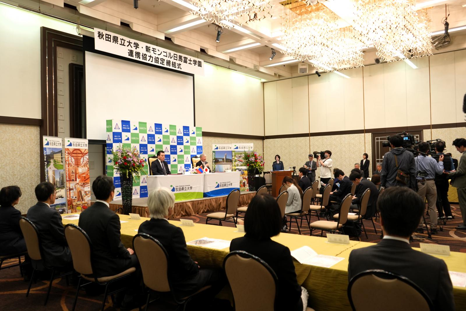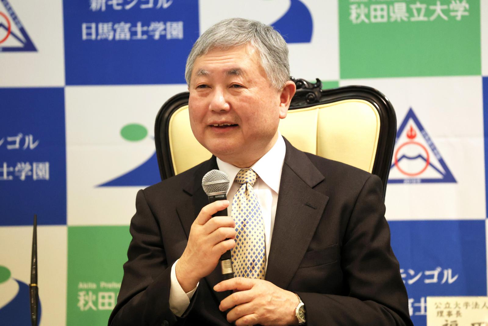 日馬富士理事長からは、「生徒たちが目標を持ち、多くの方々との出会いと支えの中で夢を叶えてほしい。秋田県立大学との交流が、世界で活躍する人材を育てる大きな刺激になることを期待している」との力強いお言葉をいただきました。また、本学の福田学長は「多様な人材を本学に迎え入れ、キャンパスの国際化を加速させたい。この連携が、双方の学生にとって世界をリードする一助となることを願っている」と展望を述べました。本学は今後、この新たなパートナーシップを通じ、秋田とモンゴルを繋ぐ教育・研究の架け橋として、より一層の国際貢献に努めてまいります。