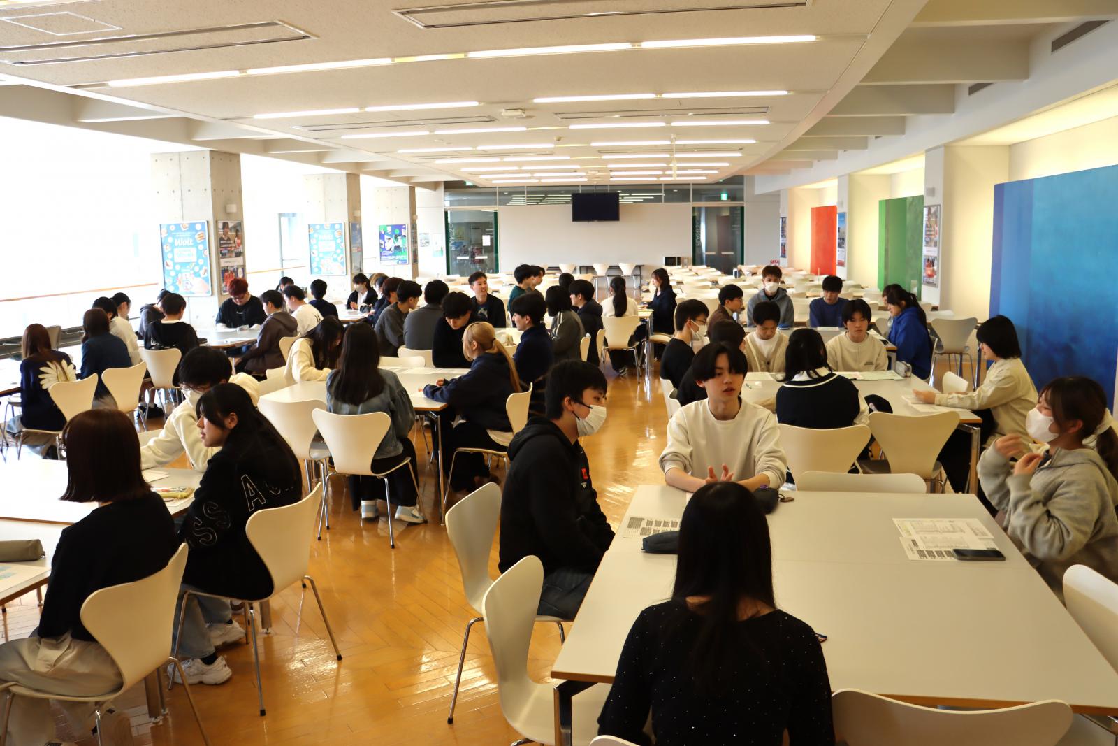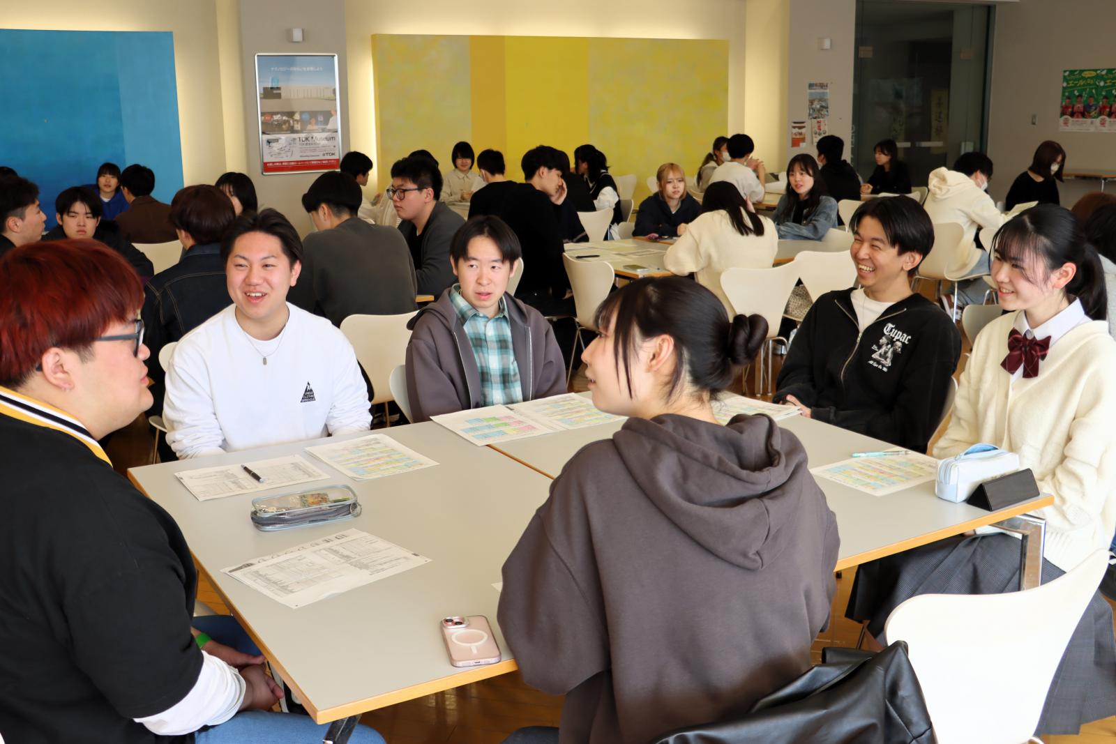 令和8年3月16日(月)、本学生物資源科学部の総合型選抜及び学校推薦型選抜Ⅰ・Ⅱの合格者を対象に、入学前スクーリング内で「先輩と新入生との交流会」を開催しました。本学では、総合型選抜合格者や学校推薦型選抜合格者を対象として入学前教育を実施しております。この入学前教育は、大学の授業に不可欠となる基礎知識、学習習慣、学びの方法などを早期に身につけられるよう、また、在学生から学習や生活に関する経験談を直接聞くことにより、入学までの不安の解消や学習のモチベーション向上を図ることを目的に実施しております。